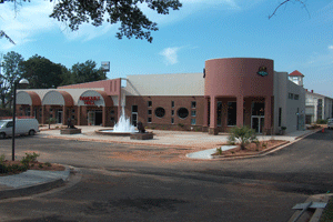 Scope: A State of the Art Facility implementing a new concept in retail design. This facility creates a major node in Decatur with a pedestrian plaza, fountain, and statues. Innovation in design is a major component with an angular accent screen wall, circular viewing windows and entry tower as an aesthetic artistic expression.